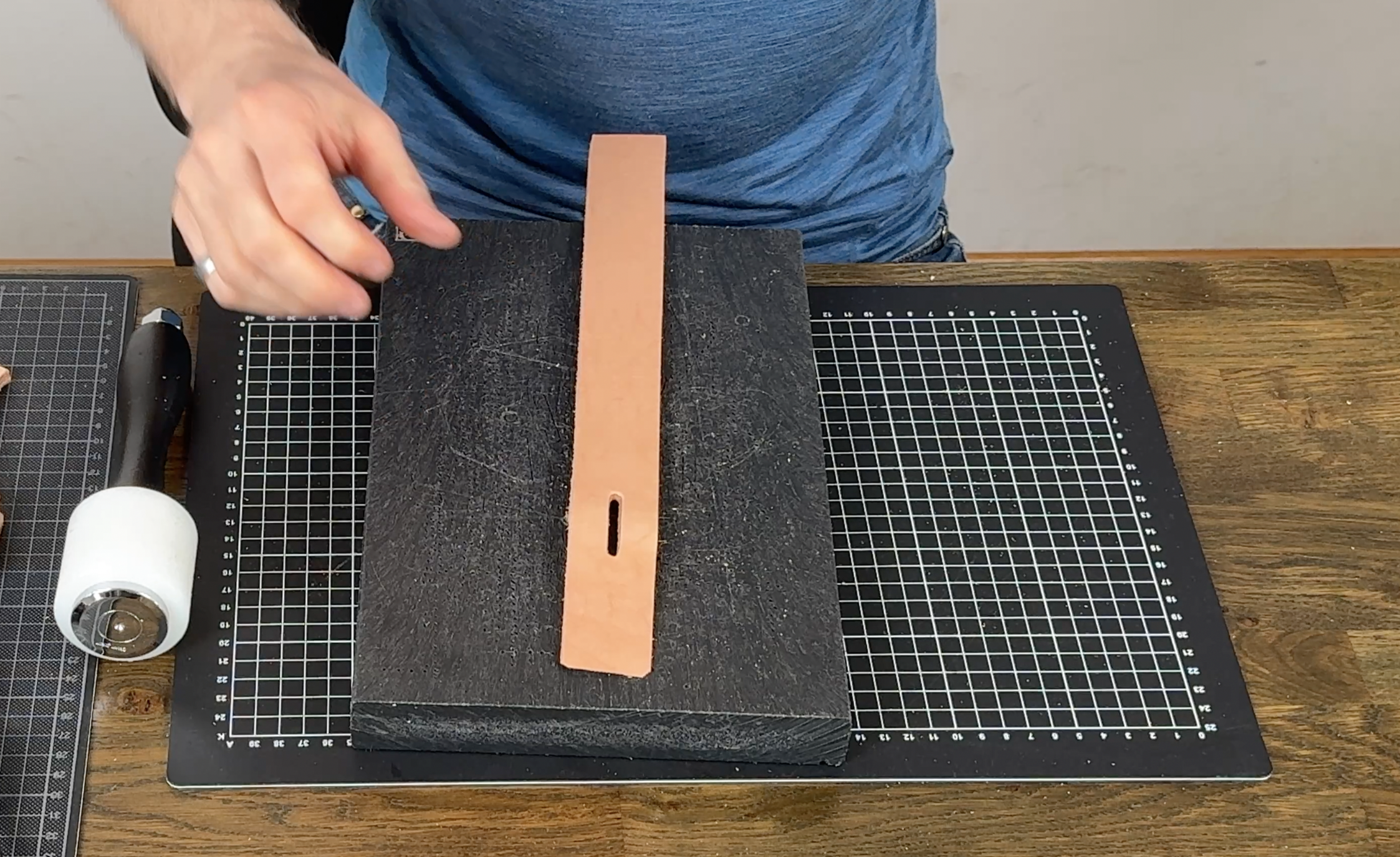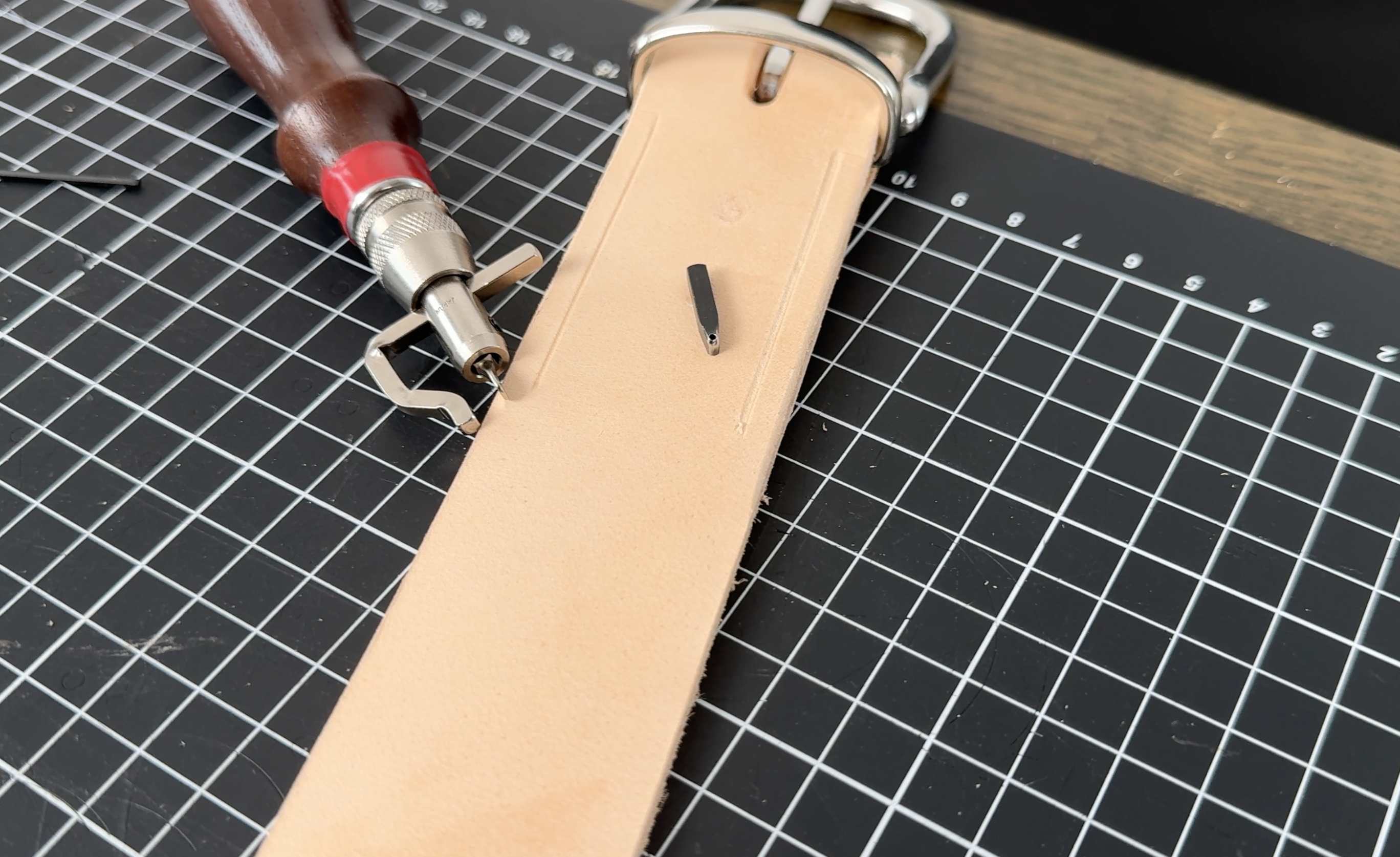 Das Langloch für den Gürteldorn lässt sich am einfachsten mit einem Kappenlocheisen erstellen.