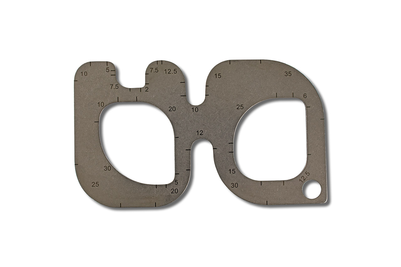 Radiusschablone mit verschiedenen Innen- und Außenradien ermöglicht das Anzeichnen oder auch das direkte Schneiden präziser Radien an 90° Ecken.