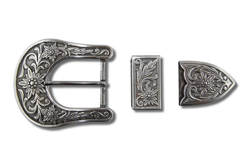 3-Teiliges Gürtelschnallen Set, Floral, antik silber